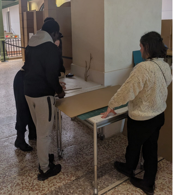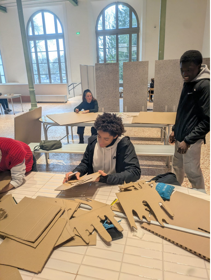 Il ont ensuite contribué à la conception d’une sculpture en carton à la manière d’Eva Jospin