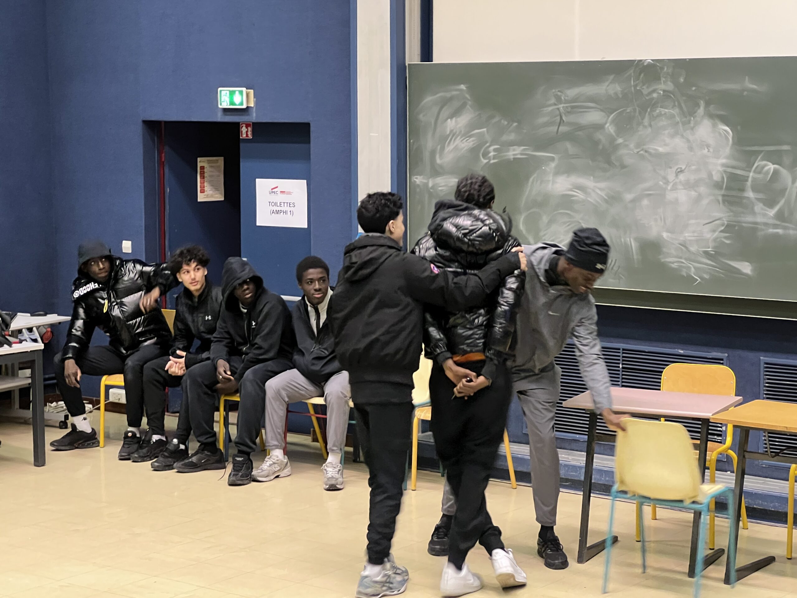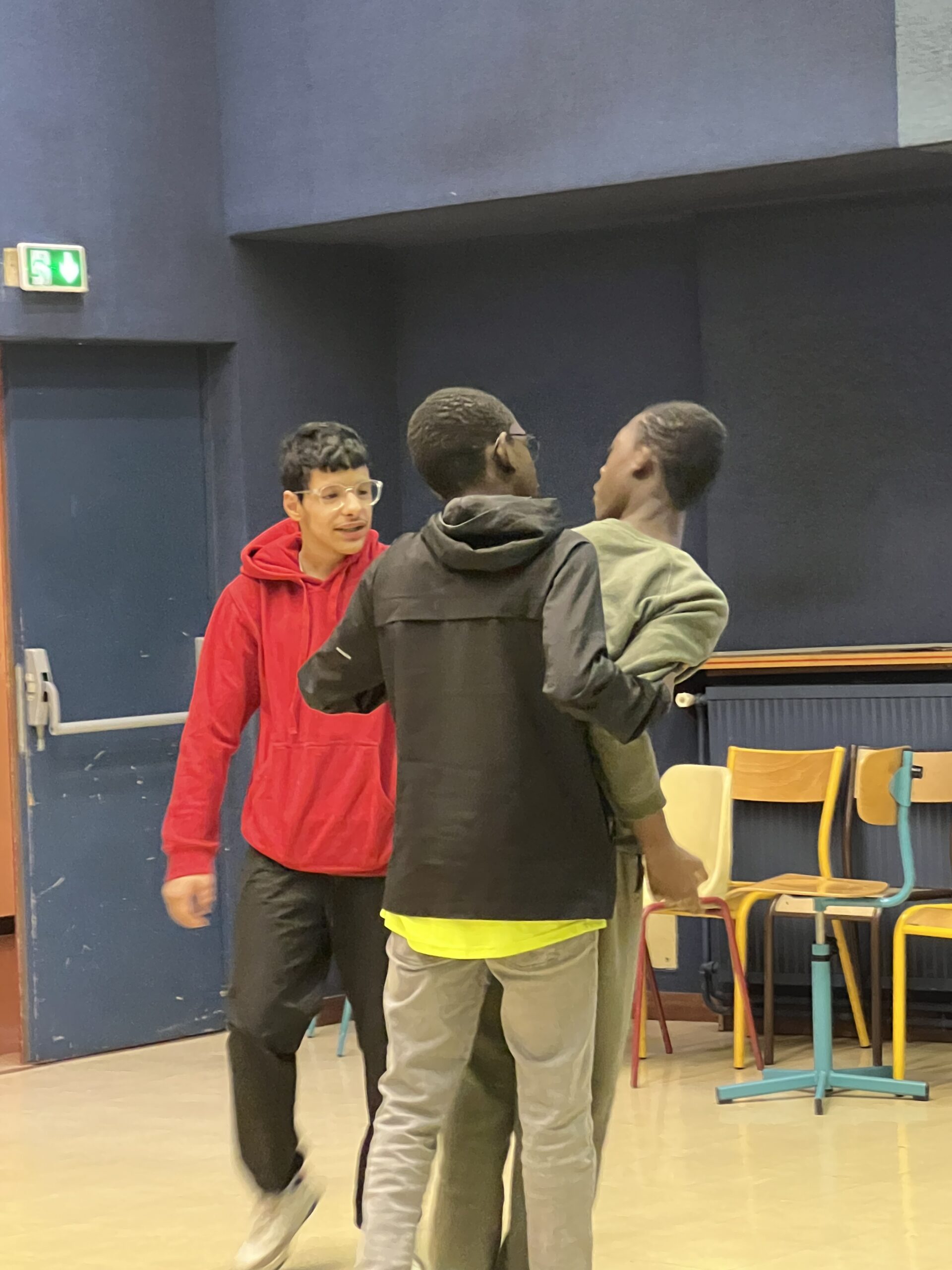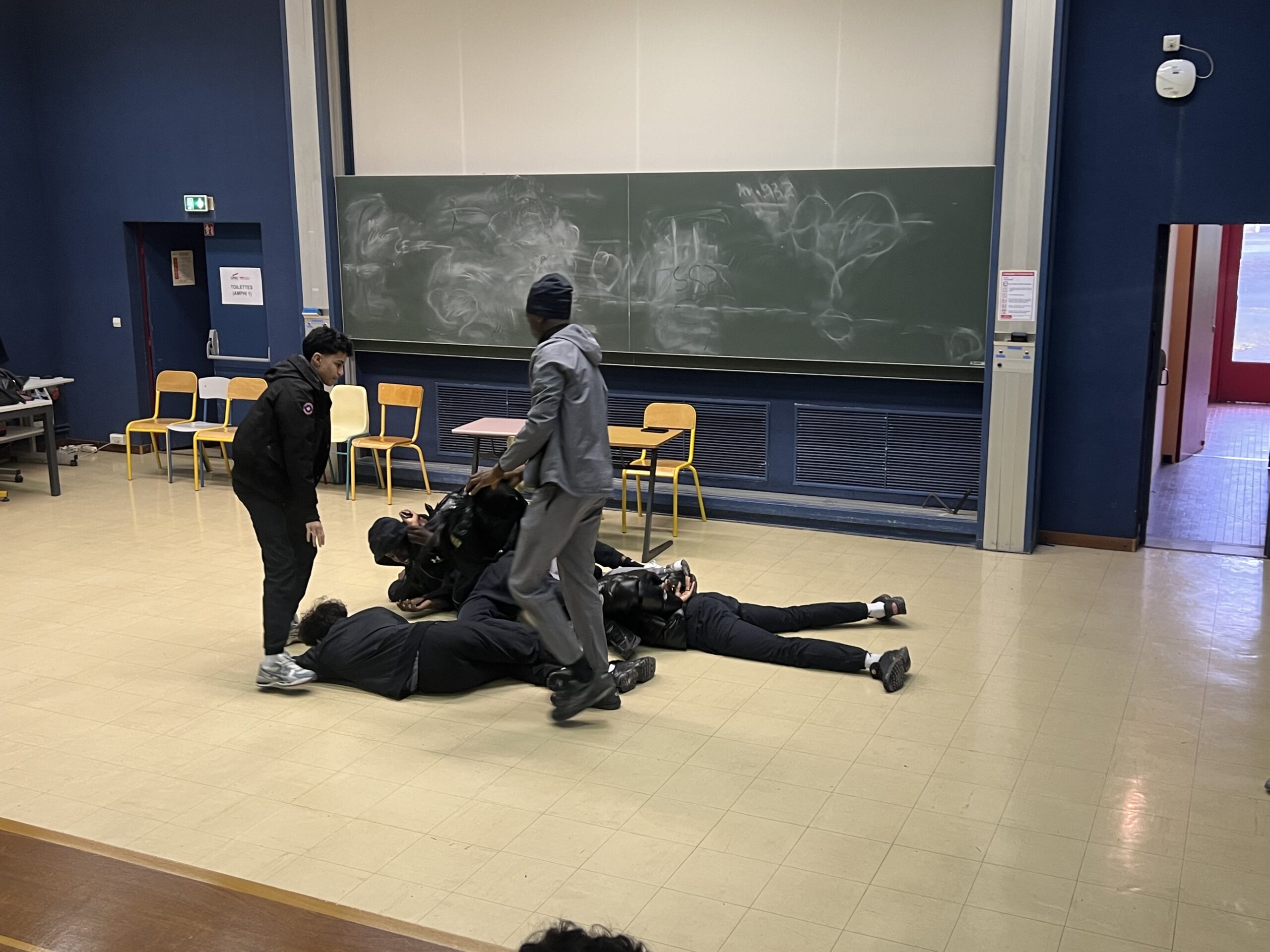 Article rédigé par Mme MEROT, professeure documentaliste. Un projet théâtre, mené avec les élèves de la 2A encadrés par Orlène DABADIE et Bastien TOUMINET, membres de la “Nouvelle Compagnie” de Saint-Denis a permis à nos lycéens de créer et de jouer. Le 2 avril 2026, lors du cinquième et dernier atelier les lycéens ont interprété les scénettes qu’ils avaient eux-même imaginées, autour du thème des “embrouilles” qu’ils ont souhaité explorer. Les élèves se sont montrés très enthousiastes et ces ateliers citoyens leur ont permis de pratiquer les communications non verbale et non violente ainsi que la cohésion de groupe.