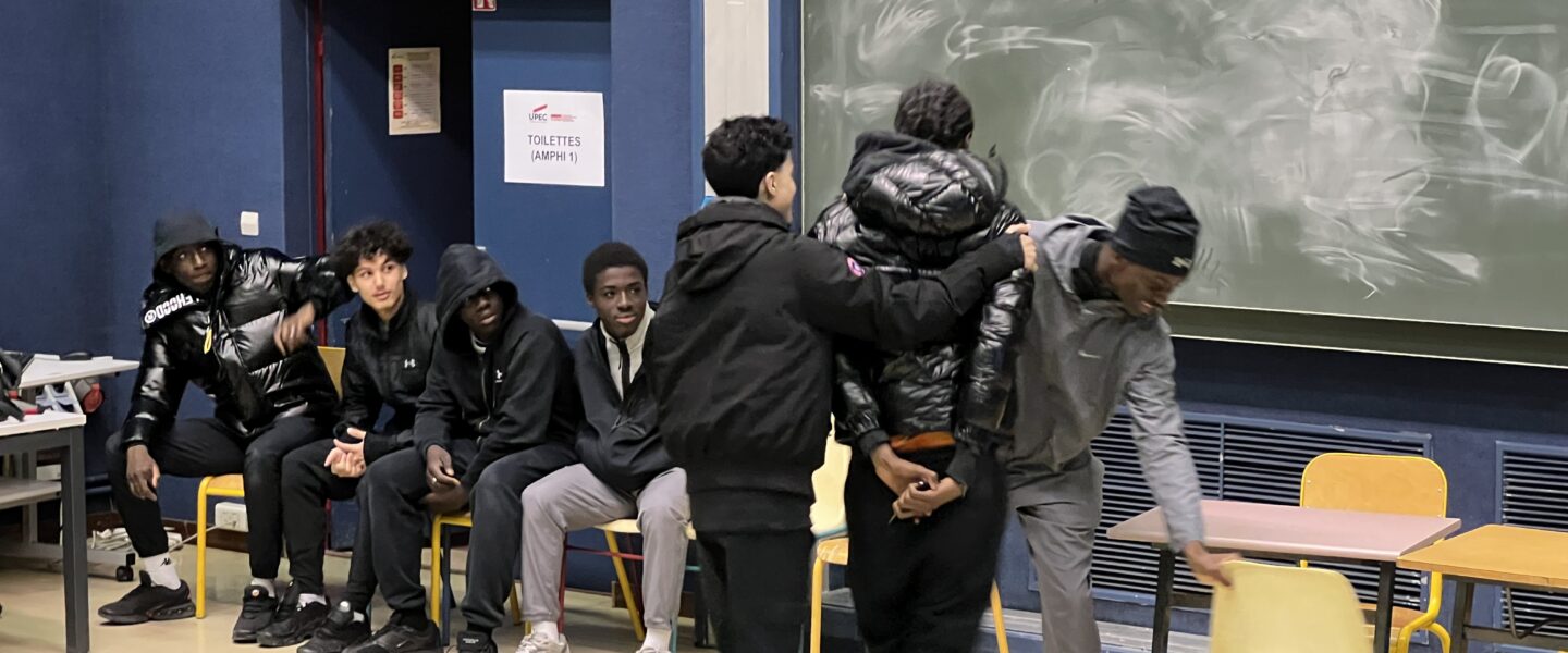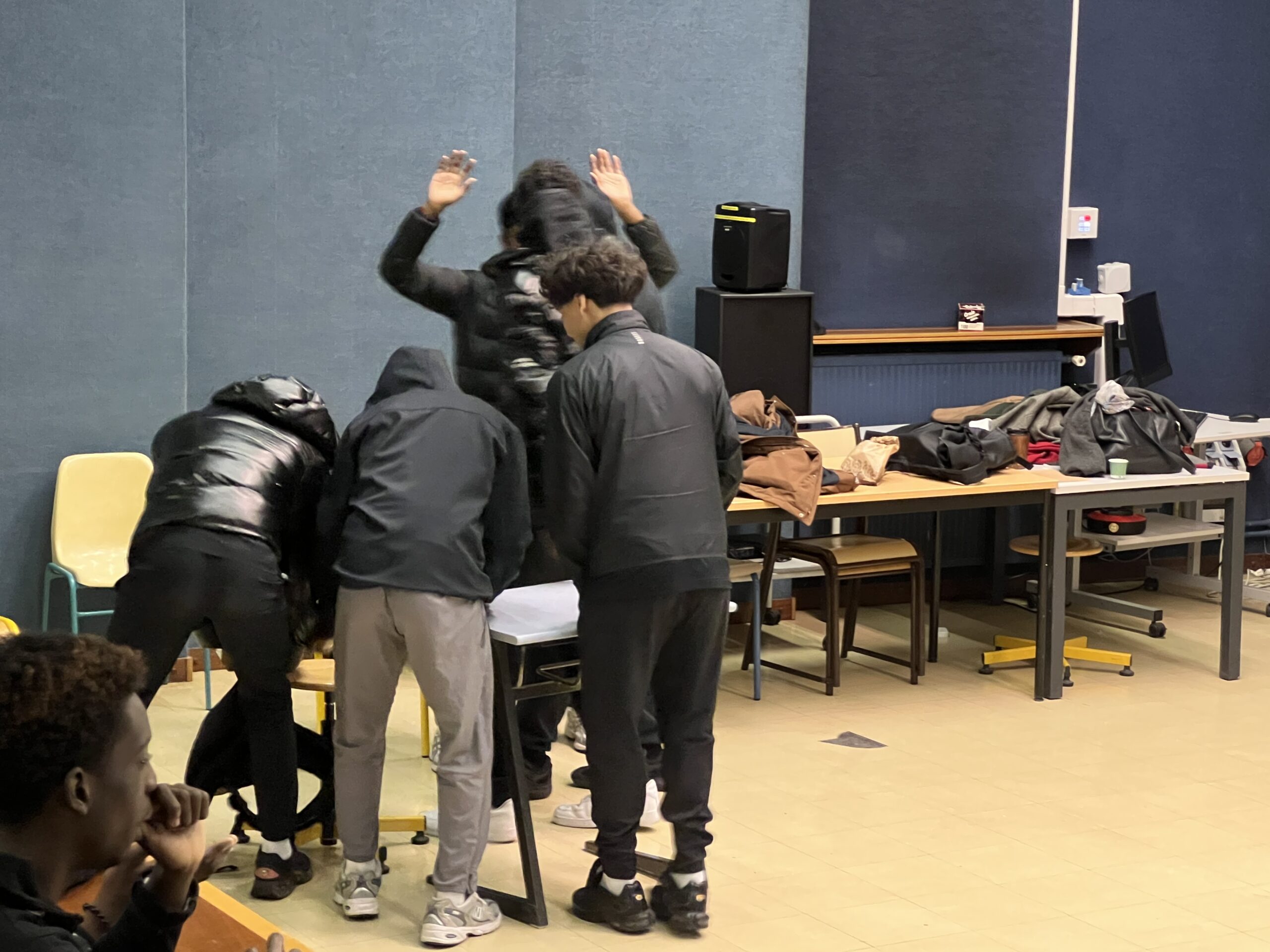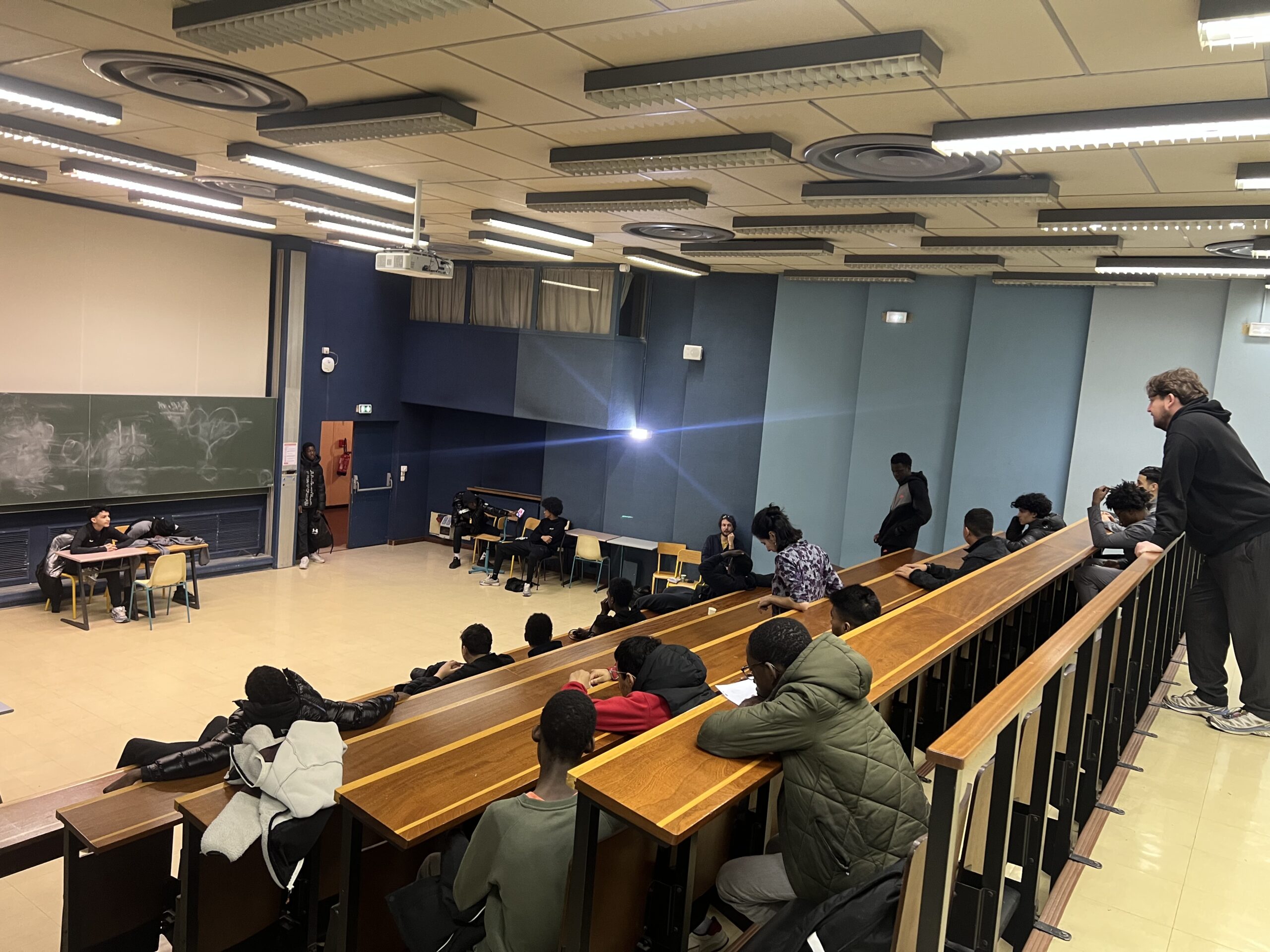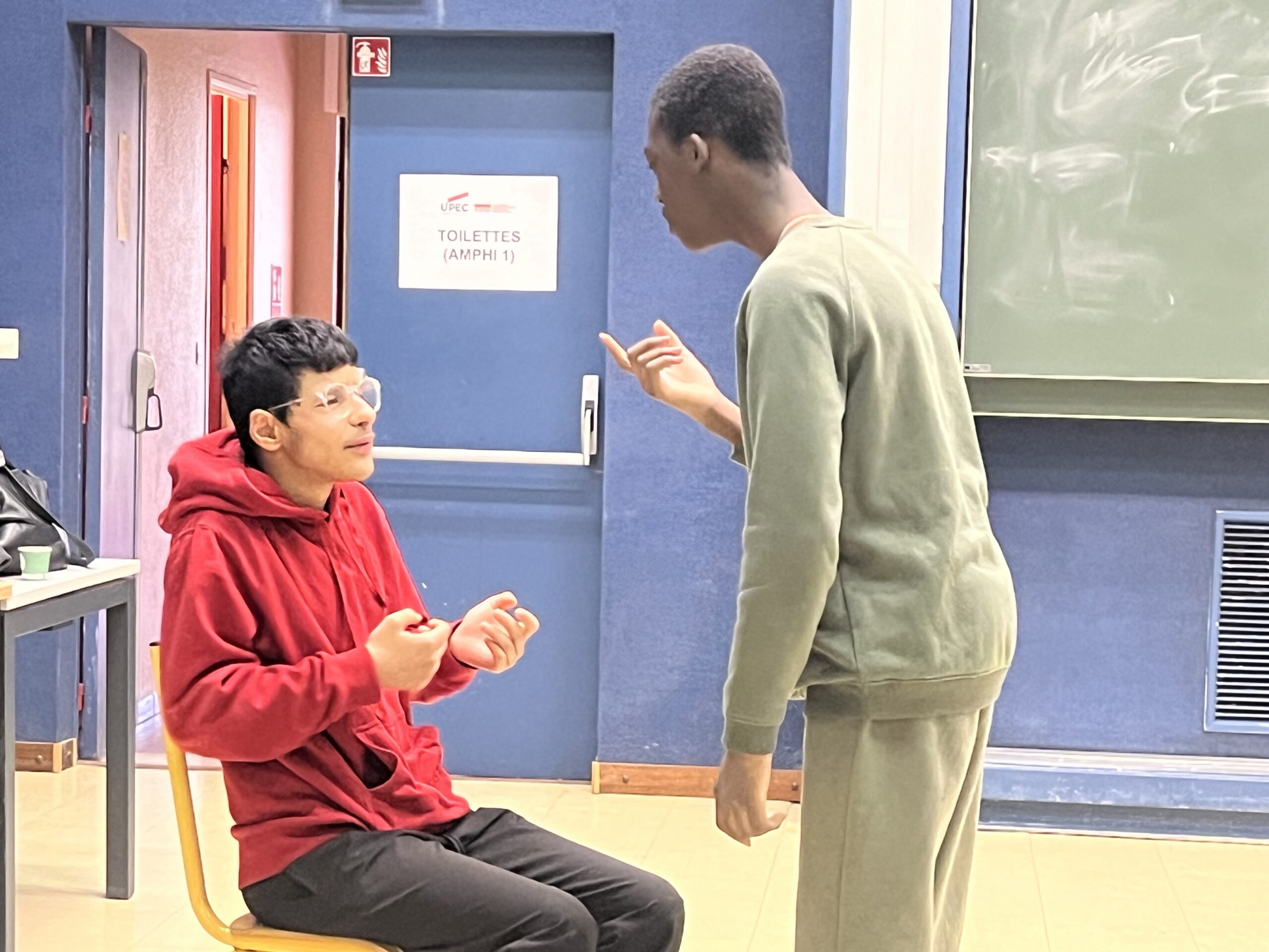 Article rédigé par Mme MEROT, professeure documentaliste. Un projet théâtre, mené avec les élèves de la 2A encadrés par Orlène DABADIE et Bastien TOUMINET, membres de la “Nouvelle Compagnie” de Saint-Denis a permis à nos lycéens de créer et de jouer. Le 2 avril 2026, lors du cinquième et dernier atelier les lycéens ont interprété les scénettes qu’ils avaient eux-même imaginées, autour du thème des “embrouilles” qu’ils ont souhaité explorer. Les élèves se sont montrés très enthousiastes et ces ateliers citoyens leur ont permis de pratiquer les communications non verbale et non violente ainsi que la cohésion de groupe.