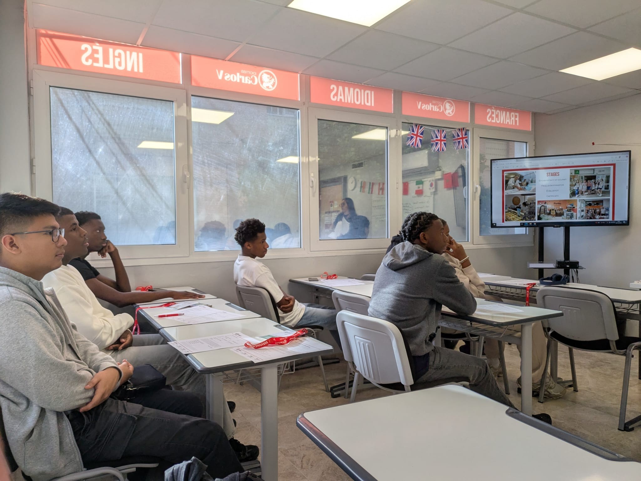 Après un départ retardé d’une heure, élèves et accompagnateurs sont bien arrivés et les élèves ont tous rejoint leurs familles d’accueil.